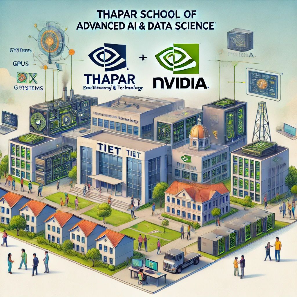 Thapar Institute of Engineering & Technology (TIET) announced a partnership with NVIDIA to establish the Thapar School of Advanced AI & Data Science (TSAAI) at its Patiala campus. This collaboration aims to provide academic programs, research opportunities, and innovation projects in AI. TSAAI will feature NVIDIA DGX systems with H100 and A100 Tensor Core GPUs, and the NVIDIA AI Enterprise software, offering 227 petaflops of AI performance and nearly 8 terabytes of GPU memory. TIET will also set up 500 Jetson Nano developer kits for edge computing. The institute plans to offer a BE in Artificial Intelligence and Machine Learning and later a Master's Program in AI, ML, and DS. NVIDIA will extend its 'Inception' program benefits to TIET-incubated AI startups.